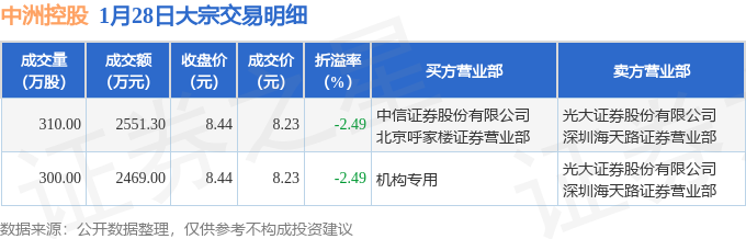 证券之星消息,1月28日中洲控股发生大宗交易,交易数据如下: