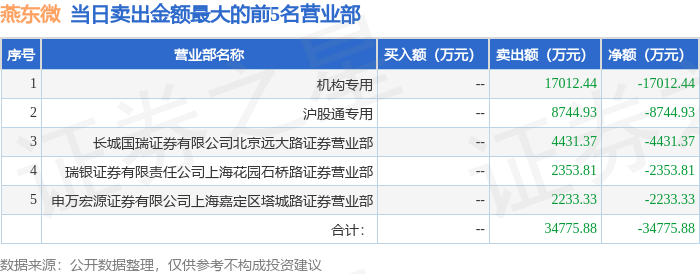 从龙虎榜公布的当日买卖数据来看,机构合计净买入3.12亿元,北向资金合计净卖出2297.09万元。