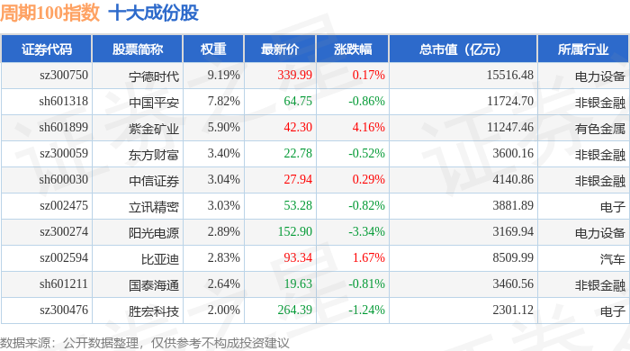 周期100(399402)指数十大成份股详情如下: