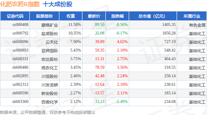 化肥农药R(480035)指数十大成份股详情如下: