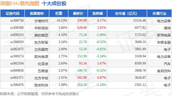 资金流向方面,深指ESG领先(970029)指数成份股当日主力资金净流出合计125.49亿元,游资资金净流出合计10.9亿元,散户资金净流入合计136.39亿元。成份股资金流向详情见下表: