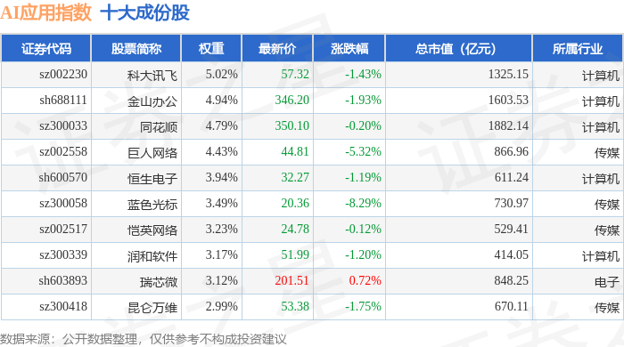 AI应用(980112)指数十大成份股详情如下: