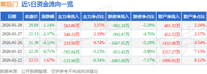1月28日的资金流向数据方面,主力资金净流入563.86万元,占总成交额3.15%,游资资金净流出965.18万元,占总成交额5.39%,散户资金净流入401.32万元,占总成交额2.24%。