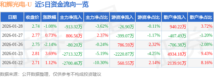 1月28日的资金流向数据方面,主力资金净流出913.32万元,占总成交额3.62%,游资资金净流出26.9万元,占总成交额0.11%,散户资金净流入940.22万元,占总成交额3.72%。