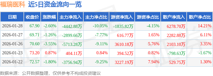 证券之星消息,截至2026年1月28日收盘,福瑞医科(300049)报收于67.9元,下跌2.6%,换手率2.77%,成交量6.48万手,成交额4.42亿元。