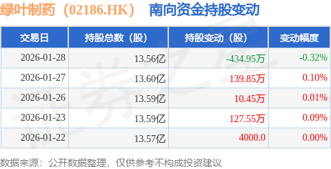 证券之星消息,1月28日南向资金减持434.95万股绿叶制药(02186.HK)。近5个交易日中,获南向资金减持的有1天,累计净减持156.7万股。近20个交易日中,获南向资金减持的有11天,累计净减持3047.25万股。截至目前,南向资金持有绿叶制药(02186.HK)13.56亿股,占公司已发行普通股的33.93%。