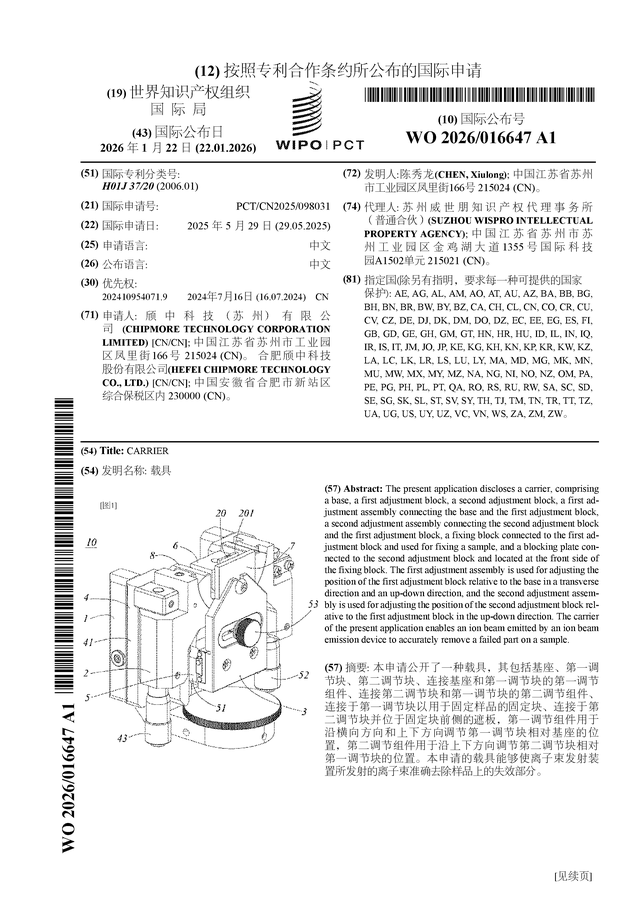 证券之星消息,根据企查查数据显示颀中科技(688352)公布了一项国际专利申请,专利名为“载具”,专利申请号为PCT/CN2025/098031,国际公布日为2026年1月22日。