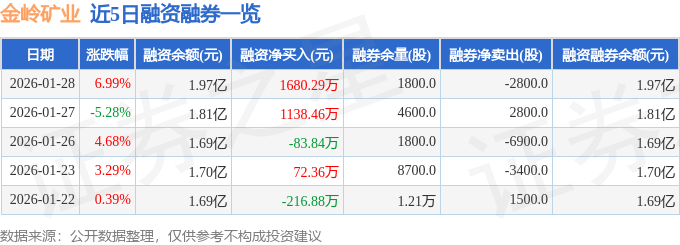 证券之星消息,截至2026年1月28日收盘,金岭矿业(000655)报收于11.33元,上涨6.99%,换手率6.85%,成交量40.79万手,成交额4.5亿元。