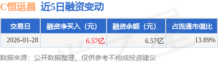 证券之星消息,1月28日,C恒运昌(688785)融资买入6.9亿元,融资偿还3321.31万元,融资净买入6.57亿元,融资余额6.57亿元,当日融资净买入排名第5。
