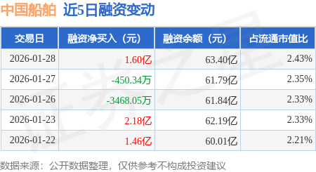 证券之星消息,1月28日,中国船舶(600150)融资买入4.77亿元,融资偿还3.17亿元,融资净买入1.6亿元,融资余额63.4亿元,当日融资净买入排名第37,近20个交易日中有14个交易日出现融资净买入。