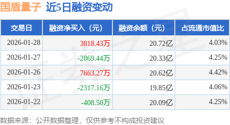 证券之星消息,1月28日,国盾量子(688027)融资买入2.82亿元,融资偿还2.44亿元,融资净买入3818.43万元,融资余额20.72亿元。