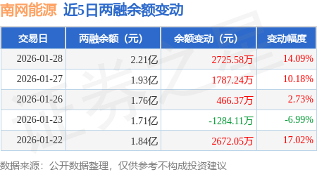 证券之星消息,1月28日,南网能源(003035)融资买入6863.12万元,融资偿还4150.0万元,融资净买入2713.12万元,融资余额2.18亿元,近3个交易日已连续净买入累计4934.51万元,近20个交易日中有11个交易日出现融资净买入。