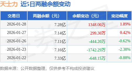 证券之星消息,1月28日,天士力(600535)融资买入3744.88万元,融资偿还2399.83万元,融资净买入1345.05万元,融资余额7.26亿元。
