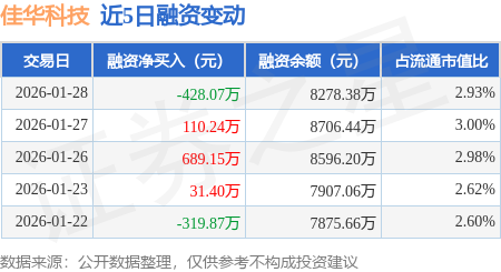 证券之星消息,1月28日,佳华科技(688051)融资买入354.36万元,融资偿还782.43万元,融资净卖出428.07万元,融资余额8278.38万元。