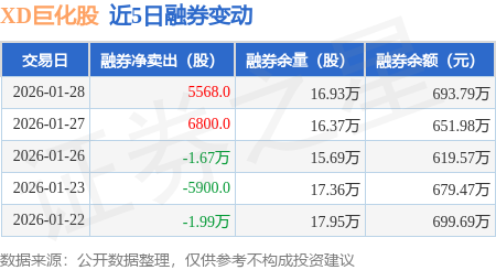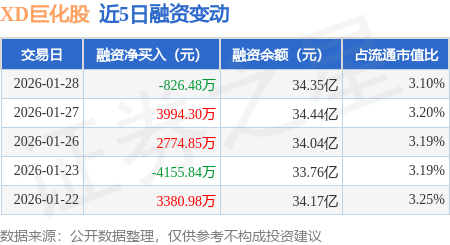证券之星消息,1月28日,XD巨化股(600160)融资买入1.42亿元,融资偿还1.5亿元,融资净卖出826.48万元,融资余额34.35亿元。