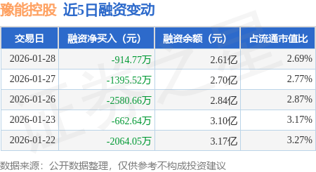 证券之星消息,1月28日,豫能控股(001896)融资买入1533.8万元,融资偿还2448.58万元,融资净卖出914.77万元,融资余额2.61亿元,近20个交易日中有11个交易日出现融资净买入。