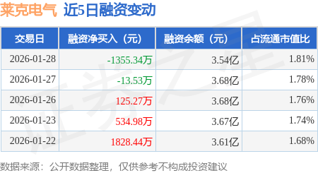 证券之星消息,1月28日,莱克电气(603355)融资买入1303.04万元,融资偿还2658.38万元,融资净卖出1355.34万元,融资余额3.54亿元,近20个交易日中有12个交易日出现融资净买入。