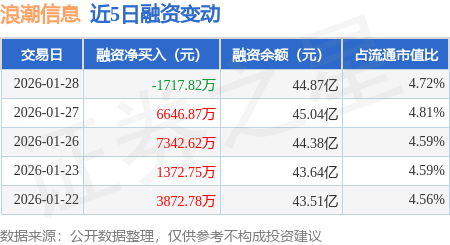 证券之星消息,1月28日,浪潮信息(000977)融资买入3.22亿元,融资偿还3.39亿元,融资净卖出1717.82万元,融资余额44.87亿元,近20个交易日中有11个交易日出现融资净买入。