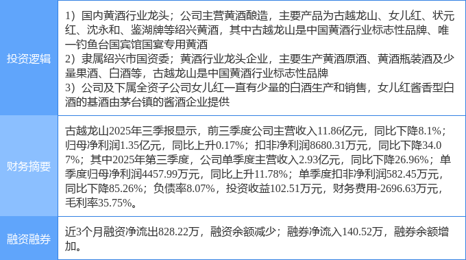 该股为白酒,黄酒,浙江国企改革概念热股,当日白酒概念上涨9.68%,黄酒概念上涨8.94%,浙江国企改革概念上涨0.11%。