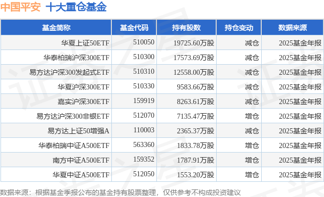 重仓中国平安的前十大公募基金请见下表: