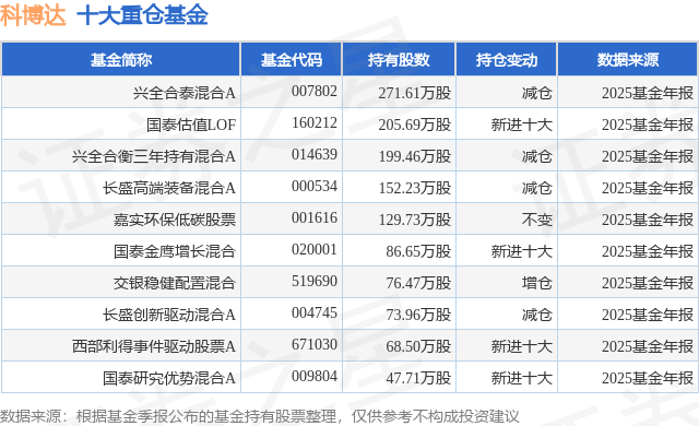 重仓科博达的前十大公募基金请见下表: