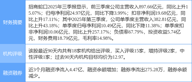 今日招商蛇口(001979)涨8.04%,收盘报10.88元。