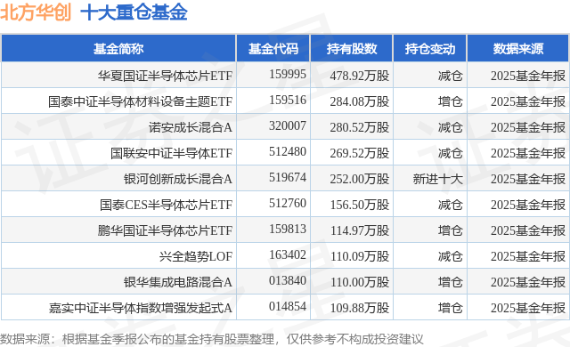 重仓北方华创的前十大公募基金请见下表: