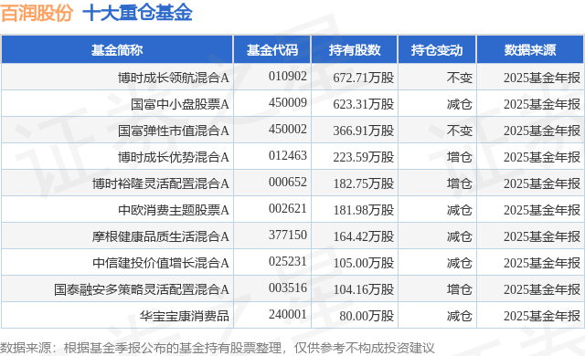 重仓百润股份的前十大公募基金请见下表:
