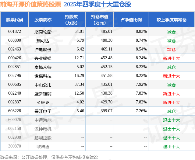 根据2025基金年报公募基金重仓股数据,重仓该股的公募基金共1家,其中持有数量最多的公募基金为前海开源基金的前海开源价值策略股票。前海开源价值策略股票目前规模为0.55亿元,最新净值1.1204(1月28日),较上一交易日上涨0.61%,近一年上涨66.43%。该公募基金现任基金经理为覃璇。