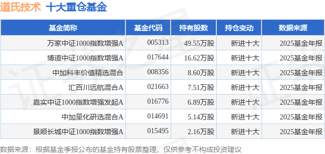 重仓道氏技术的公募基金请见下表: