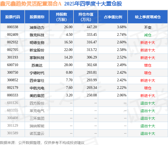 鑫元鑫趋势灵活配置混合A的前十大重仓股如下: