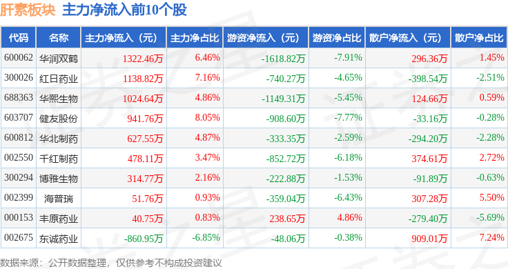 从资金流向上来看,当日肝素板块主力资金净流出2.09亿元,游资资金净流入4109.28万元,散户资金净流入1.68亿元。肝素板块个股资金流向见下表: