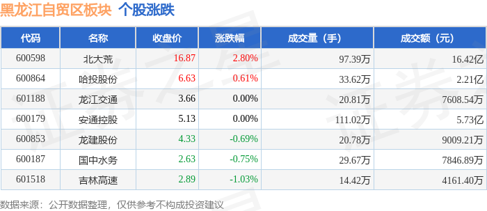 从资金流向上来看,当日黑龙江自贸区板块主力资金净流入4284.92万元,游资资金净流入7183.46万元,散户资金净流出1.15亿元。黑龙江自贸区板块个股资金流向见下表: