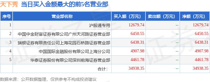 证券小知识:龙虎榜是交易所披露的竞价交易公开信息,现身龙虎榜的个股都是当日最为活跃的个股,是投资者日常重点关注的数据。交易所公布当日买入金额和卖出金额前五名的席位,其中一些席位代表特殊意义,如机构专用席位是指基金专用席位、券商自营专用席位、社保专用席位、券商理财专用席位、保险机构专用席位、保险机构租用席位、QFII专用席位等机构投资者买卖证券的专用通道和席位。深股通专用、沪股通专用为北向资金的交易席位。
