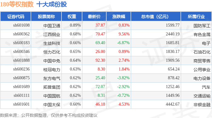 180等权(000051)指数十大成份股详情如下: