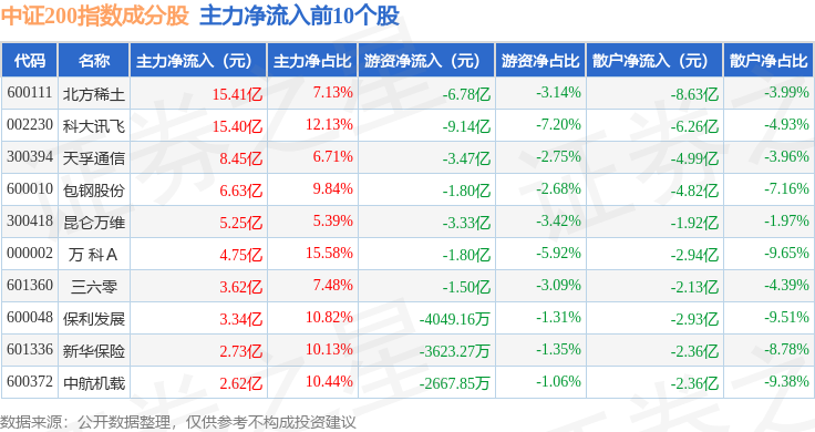 资金流向方面,中证200(000904)指数成份股当日主力资金净流出合计167.97亿元,游资资金净流入合计49.04亿元,散户资金净流入合计118.93亿元。成份股资金流向详情见下表: