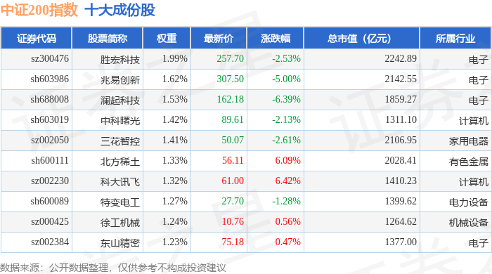 中证200(000904)指数十大成份股详情如下: