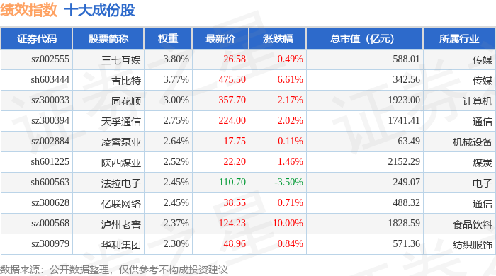 资金流向方面,绩效指数(399398)成份股当日主力资金净流入合计83.48亿元,游资资金净流出合计55.08亿元,散户资金净流出合计28.4亿元。成份股资金流向详情见下表: