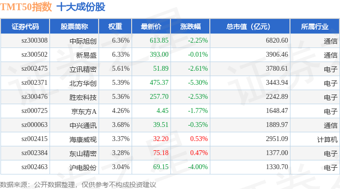 TMT50(399610)指数十大成份股详情如下: