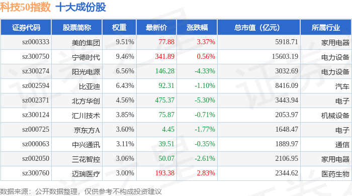科技50(970080)指数十大成份股详情如下: