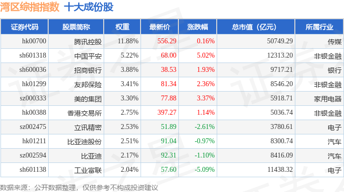 资金流向方面,湾区综指(980003)指数成份股当日主力资金净流出合计164.12亿元,游资资金净流入合计25.24亿元,散户资金净流入合计138.36亿元。成份股资金流向详情见下表: