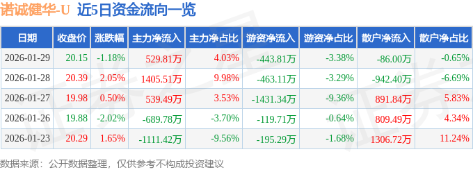 证券之星消息,截至2026年1月29日收盘,诺诚健华(688428)报收于20.15元,下跌1.18%,换手率2.41%,成交量6.47万手,成交额1.31亿元。