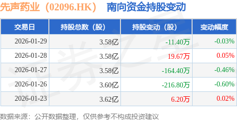 证券之星消息,1月29日南向资金减持11.4万股先声药业(02096.HK)。近5个交易日中,获南向资金减持的有3天,累计净减持366.73万股。近20个交易日中,获南向资金减持的有17天,累计净减持3763.19万股。截至目前,南向资金持有先声药业(02096.HK)3.58亿股,占公司已发行普通股的13.78%。