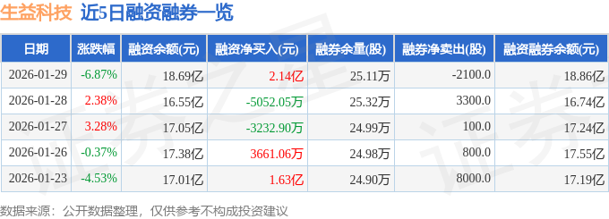 证券之星消息,截至2026年1月29日收盘,生益科技(600183)报收于69.4元,下跌6.87%,换手率2.13%,成交量50.93万手,成交额36.25亿元。