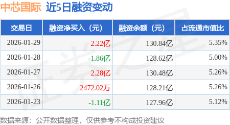 证券之星消息,1月29日,中芯国际(688981)融资买入12.96亿元,融资偿还10.74亿元,融资净买入2.22亿元,融资余额130.84亿元,当日融资净买入排名第14。