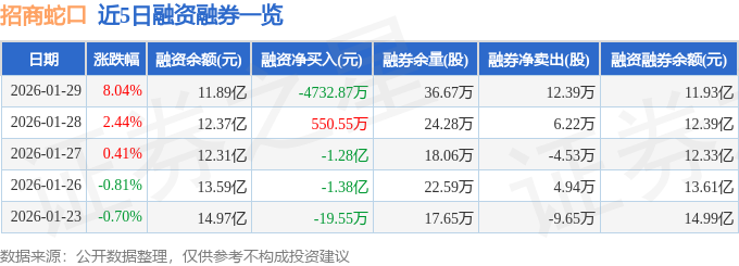 招商蛇口融资融券信息显示,融资方面,当日融资买入8690.45万元,融资偿还1.34亿元,融资净偿还4732.87万元。融券方面,融券卖出12.89万股,融券偿还5000.0股,融券余量36.67万股,融券余额398.97万元。融资融券余额11.93亿元。