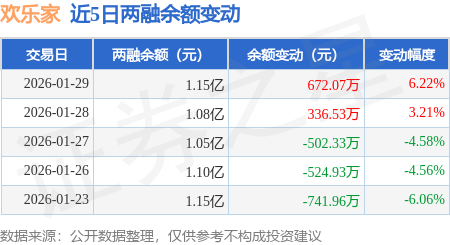 证券之星消息,1月29日,欢乐家(300997)融资买入4745.04万元,融资偿还4075.29万元,融资净买入669.75万元,融资余额1.14亿元。