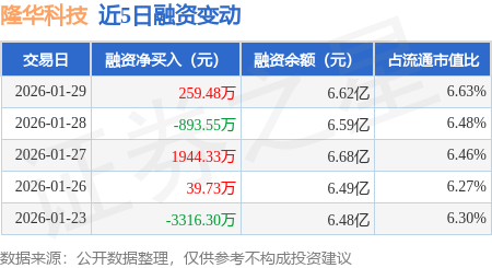 证券之星消息,1月29日,隆华科技(300263)融资买入7174.65万元,融资偿还6915.17万元,融资净买入259.48万元,融资余额6.62亿元。