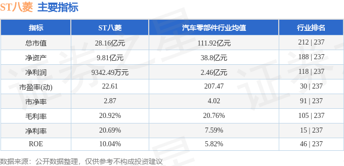 证券之星1月30日盘中消息,10点24分ST八菱(002592)触及跌停板。其所属行业汽车零部件目前下跌。领涨股为精进电动。该股为干细胞,广西概念,汽车零部件概念热股。