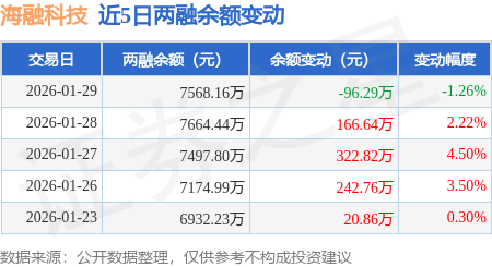 证券之星消息,1月29日,海融科技(300915)融资买入225.43万元,融资偿还322.26万元,融资净卖出96.83万元,融资余额7537.0万元,近20个交易日中有12个交易日出现融资净买入。